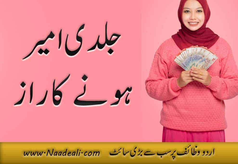 Iss post mein ham ne rohani hawalay se aap ko jaldi ameer hone ka secret bataia hai . Agr aap hamari baat ko samjh letay hain aur iss par aap amal bhe kartay hain tu allah ki zaat aap ko wafar dolat zaroor ata farma dain ghay .