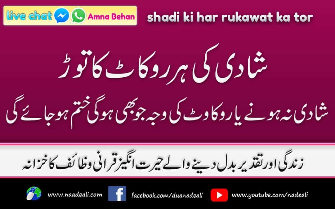 Read Moreshadi ka best wazifa Dua Nade Ali un tamam logo k liye bohat mujarrab hai , jo shadi na hone k waja se fikrmandi فکرمندی ka shikaarشکار hain.