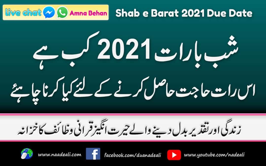Read Moreshab e barat ka Aghaz Insha Allah 29 March 2021 Ho Gha . Shab e Barat 14 shaban ka din ghuzarne k baad yani maghrib ki namaz k baad shuro hoti hai .