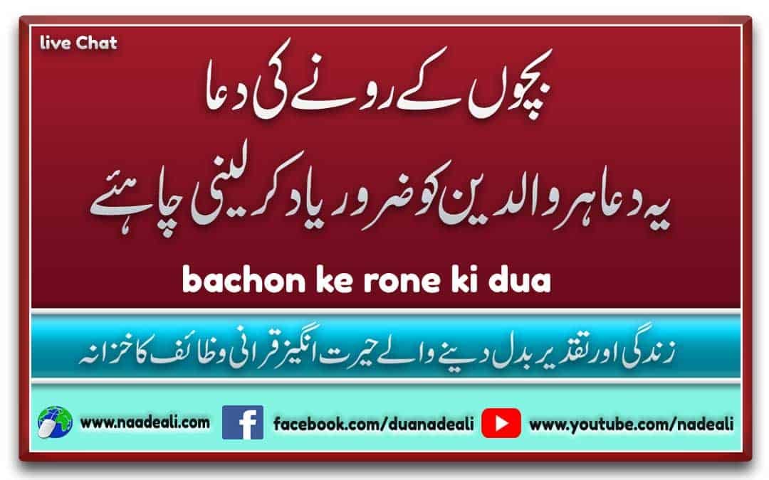 Bache rone ki dua k hawalay se agr aap ko mazid malomat darkar hain tu aap urdu wazaif ki site naadeali.com ko zaroor visit krain .