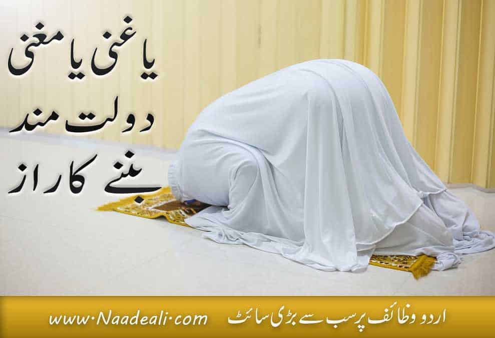 Dolat mand banne ki wish har kisi ki hoti hai likan ye wish har kisi ki pori nahi hoti likan iss k bawajood har koe apni issi wish ko pora karne k liye mehnat aur koshish karta hai . Iss post mein aap k liye dolat mand banne ka wazifa ya ghaniyu ya mughni bataia gaya hai۔ iss k ilawa dolat mand banne ka wazifa k benefits aur dolat mand banne ka wazifa k chand aysay raaz bhe ap se share kiya gaye hain ju k tamam zindagi aap k kaam ayain ghay . Lahaza agr koe bhai ya behan jaldi dolat hasil karna chahtay hain tu dolat mand banne ka wazifa ya ghaniyu ya mughni mohabbat se parhen. Iss wazifa ki urdu detail nechay darj hai .