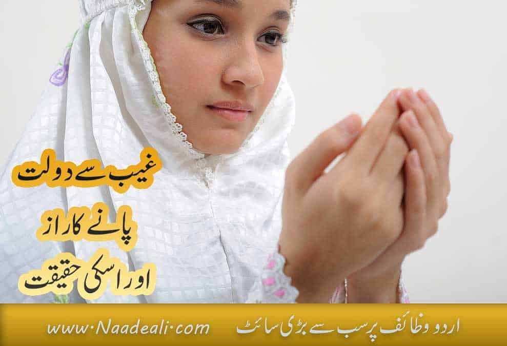 Nojawani mein har fard ye chahta hai k iss ko gaibi dolat hasil ho , apni iss wish ko pora karne k liye nojawan aysay wazifa ki talash mein bhe rehtay hain jes ko karne se inn ko gaib se dolat hasil hone lagh jae . Bohat se nojawan apni jawani me gaibi dolat ka wazifa kartay bhe hain . Likan asal mein inn ko gaib ka mani malom nahi hota iss waja se wo aysay wazaif mein nakam ho kar aksar mayosi ka shikaar bhe ho jatay hain . Iss post mein ham sab se pehlay aap ko ye batayen ghay k gaib ka kiya matlab hai iss k baad aap ko gaibi dolat ka wazifa , gaibi dolat ka wazifa ka sahi matlab , gaibi dolat ka wazifa k benefits aur gaib se dolat hasil karne k hawalay se islam mein hukam k baray mein aap ko batayen ghay . Lahaza agr koe bhai ya behan gaibi dolat ka wazifa karna chahtay hain tu wo iss post ko samajh kar read kar lein .