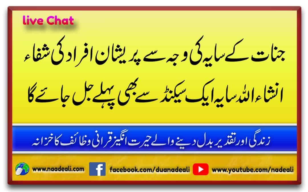 کالا جادو کا علاج کے لئے آپ ہر فرض نماز کے بعد ایک بار ایت الکرسی پڑھ لیں انشاء اللہ جب آپ کو ایت الکرسی ورد کرنے کی عادت ہو جاے گی تو آپ کو جادو سے نجات بھی مل جاے گی اور آپ آئندہ زندگی ہر قسم کے جادو ، جنات ، دشمن اور شیطان سے محفوظ بھی رہیں گے ۔ اس کے علاوہ کالا جادو سے نجات اور حفاظت کے لئے دوسرا مجرب عمل نقش ایت الکرسی ہے ۔ یعنی آپ جمعہ کے دن مغرب کی نماز کے بعد ایت الکرسی کو پاک سیاہی سے عربی میں تحریر کرکے اپنے گھر میں بھی رکھیں اور اپنے پاس بھی رکھیں۔ انشاء اللہ نقش ایت الکرسی کی برکت سے آپ کو ہر قسم کے جادو ، جنات اور دشمن سے ہمیشہ کے لئے نجات مل جاے گی۔ نقش ایت الکرسی آپ5 مساکین کو کھانا کھلا کر آستانہ سے فری حاصل کر سکتے ہیں ۔