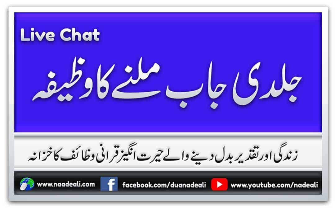 Jaldi job milne ka wazifa inallah ala kulli shayin qadeer hai ju k surah baqarah ki ayat 20 k end mein hai .inallah ala kulli shayin qadeer ka wazifa ki barkat se aap ko aap ki pasand ki job insha allah jald hasil ho jae ghe . Ye wazifa 7 din tak kyia jata hai , likan 7 rooz se pehley hi aap ko aap k pasand ki job hasil ho jae ghe .