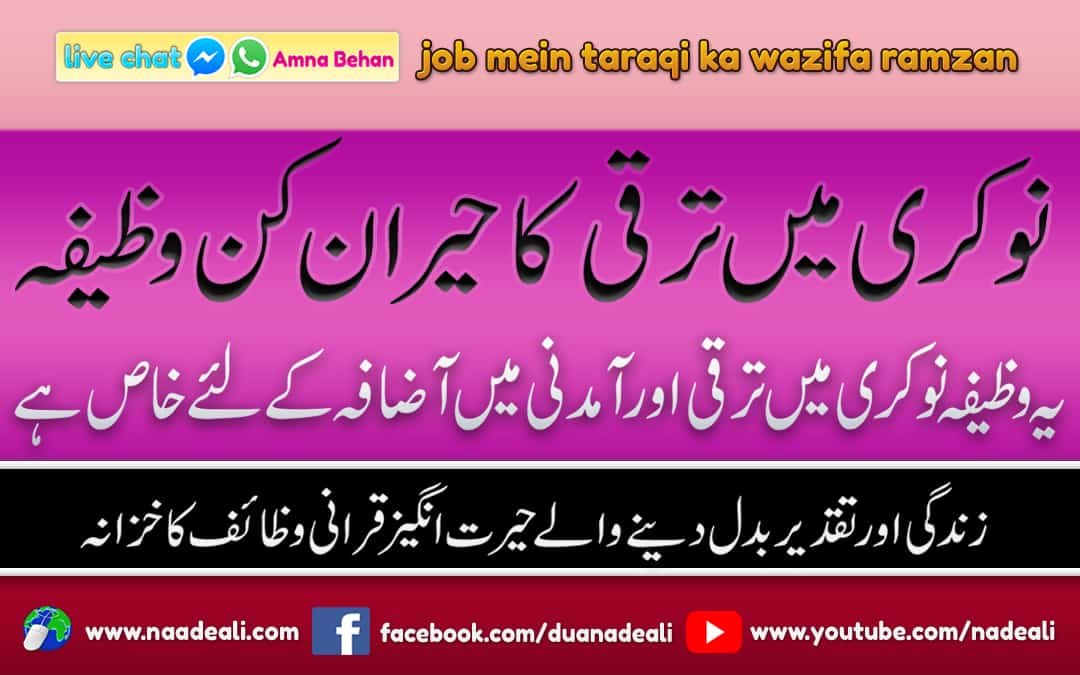 Job Mein Taraqi K Liye Aap Mahe Ramzan Mein 100 Bar Durood E Ibrahimi Aur 3 Bar Surah Mulk 7 Rooz Tak Zaroor Parhen. Insha Allah Job Mein Taraqi Aap Ka Maqqader Ban Jae Ghe . Taraqi K Es Wazaifa Ki Detail Video Mein Mojood Hai .