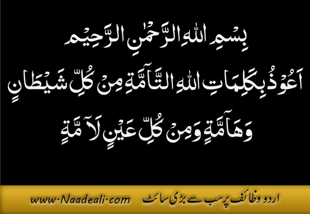 میں اللہ کے کامل کلمات کے زریعے پناہ چاہتا ہوں ۔ ہر شیطان ، زہریلے جانور اور ہر ضرر رساں چیز سے