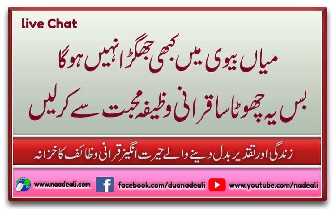 Shadi k baad, aik aurat k liye is k shohar ki mohabbat sab se ziada zaroori hai aur agar shohar ki mohabbat mein kami ho to biwi shohar ki mohabbat haasil karne k liye har terhan ki tarkeeb ka astmal karti hai. Yaad rahay k shadi ke chand mah baad shohar ki mohabbat mein kami aa jana aik aam baat hai lekin agar is mohabbat mein kami ki wajah koi ghair aurat hai to yeh aam baat nahi. Shadi k baad aik saal tak shohar ya is ki biwi ko nazar bohat jaldi lag jati hai lehaza nazre bad ki wajah se aik shohar bari aasani se kisi ghair aurat ki mohabbat mein mubtala ho jata hai. Lehaza aisi soorat mein ap ko aik aisay powerful wazifa ki zaroorat hai jis ki wajah se ap k shohar ke dil o dimagh se nazre bad aur jadu k asraat bhi khatam hon ghay aur woh apni biwi ki mohabbat mein bhi hamesha mubtala bhi rahay lehaza aisa hi wazifa ap ko is post mein bataya gaya hai. Yeh wazifa surah ikhlaas ka hai. Jis ki urdu tafseel neechay darj hai . Powerful wazifa for husband love k hawalay se agr ap ko mazeed detail darkar hai tu iss k liye ap urdu wazaif ki site Naade Ali ko zaroor visit karen .