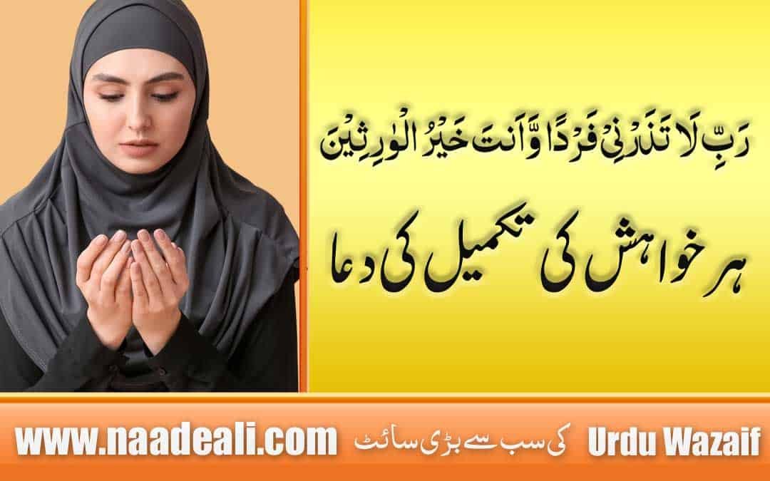 ربی لا تذرنی فرداو انت خیر الوارثین ایک عظیم دعا ہے جو کہ سورۃ الانبیاءکی ایت 89 میں ہے ۔یہ دعا مبارکہ حضرت ذکریا علیہ سلام کی ہے اور ان الفاظ کے زریعے حضرت ذکریا علیہ سلام نے اللہ سے اولاد کی طلب کی تھی ۔ ذمانہ قدیم سے اس دعا مبارکہ کو حصول اولاد کے لئے ورد کیا جاتا رہا ہے ، لیکن یہ دعا کسی بھی پریشانی کو دور کرنے کے لئے پڑھی جا سکتی ہے ۔ اس پوسٹ میں ہم آپ کو ربی لا تذرنی فرداو انت خیر الوارثین ورد کرنے کا طریقہ اور اس کے فضائل بتائیں گے ۔