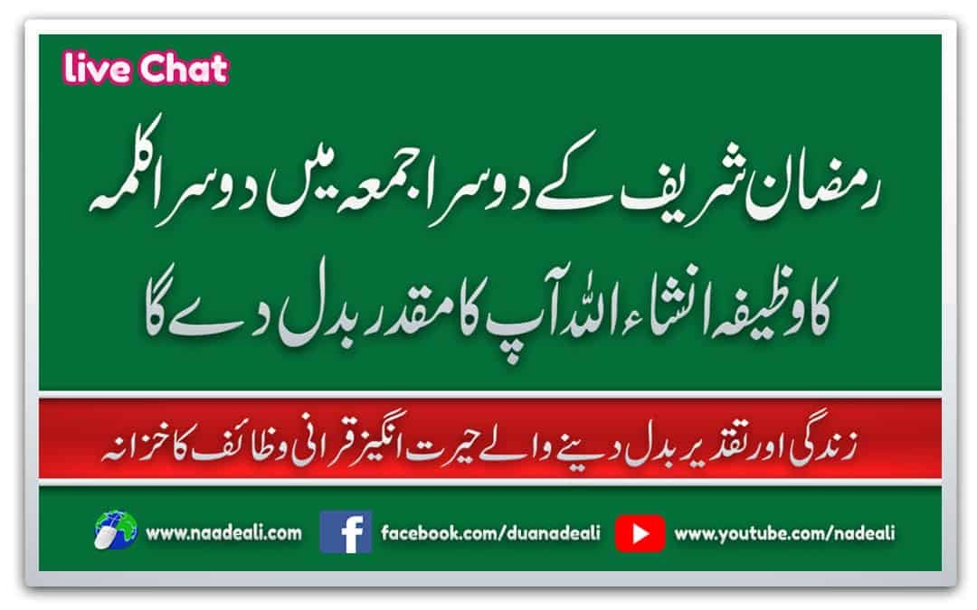 Rajab ul Murajjab Ka Chand Dekhne k Baad Ju Bhai Ya Behan 100 Bar Durood e Ibrahimi Aur 300 Bar Teesra Kalma Muhabbat Se Parh Letay Hain Tu Allah Ki Zaat Es Fard Ko Es Ki Tamam Hajaat Ata Farma Detay Hain . Wazifa Ki Detail Video Mein Mojood Hai .